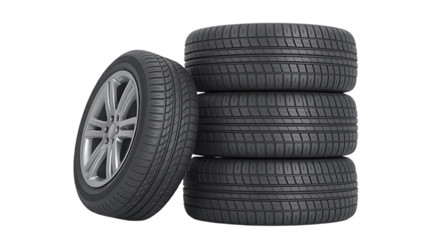 Stacked car tires on transparent background for automotive use