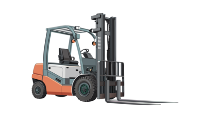 Forklift truck isolated on transparent background, a versatile vehicle for industrial and construction applications, perfect for cargo and warehouse operations