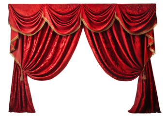 Majestic Red Velvet Curtains, Theater Stage Drape on PNG/Transparent Background