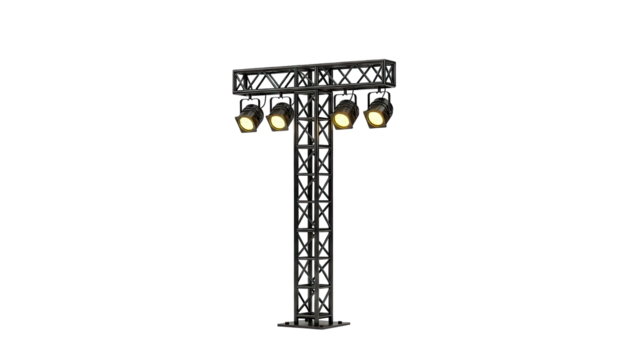 Stage lighting rig with colorful spotlights isolated on transparent background