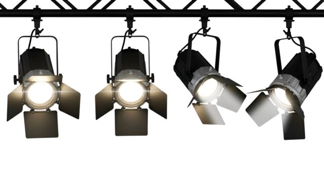 Stage lighting fixtures with transparent background for entertainment concepts