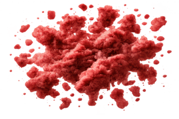 Black ink paint creating a dynamic splash or splatter, with liquid drops spreading out, making an abstract stain and messy texture