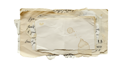 Vintage Paper Stack with Aged Texture and Handwriting Details