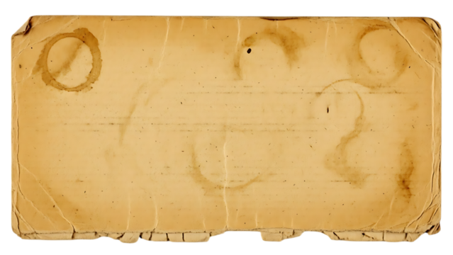 A vintage and weathered aged paper texture with coffee stains and torn edges for grunge design transparent background