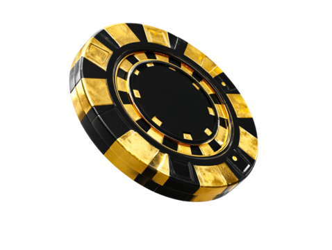 A collection of colorful casino poker chips, including blue, green, red, and yellow, isolated on a transparent background