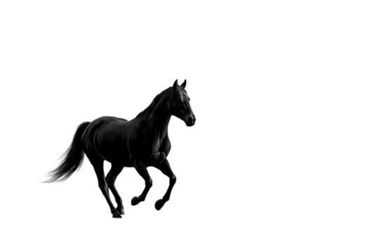 A powerful black stallion in motion isolated on a transparent background horse dark png file
