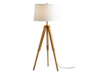 Floor Lamp with Tripod Wooden Stand and White Shade, isolated on a transparent background.