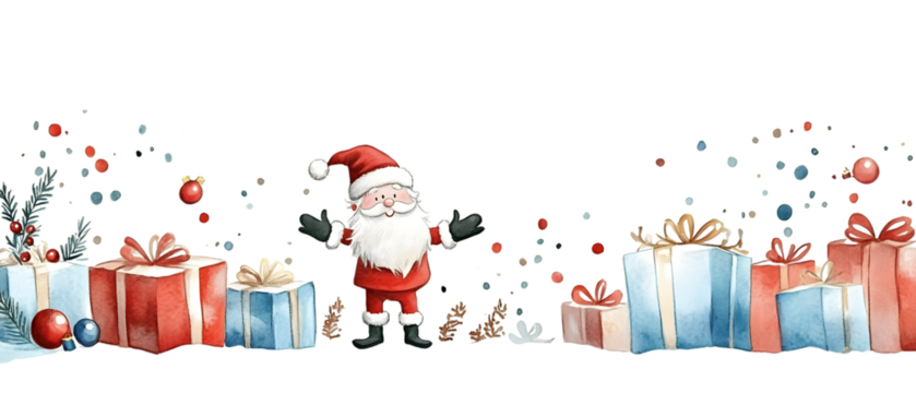 Watercolor Christmas theme decoration illustration. Winter season festive. Holiday artwork. Santa Claus standing with happy season, isolated on white background