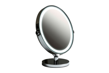 Makeup mirror with lights on transparent background illuminating beauty routine