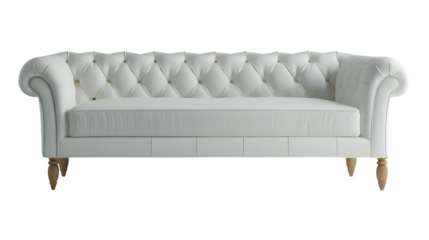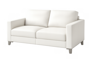 White modern loveseat sofa standing on transparent background, offering comfortable minimalist seating design for living rooms