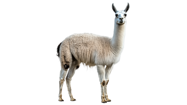 Four white cranes standing in different poses on transparent background, tall graceful bird beak