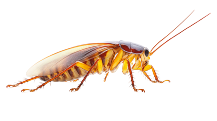 Cockroach full length standing sideways, white background