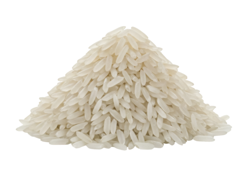 Pile of long grain rice PNG isolated on transparent background, uncooked staple food ingredient for healthy eating and Asian cuisine