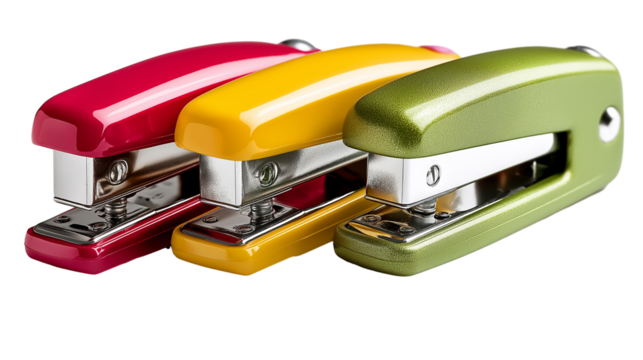 A 3D rendering of an office stapler isolated on white background PNG used for office work