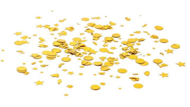 Scattered gold star and circle confetti on black background stars circles