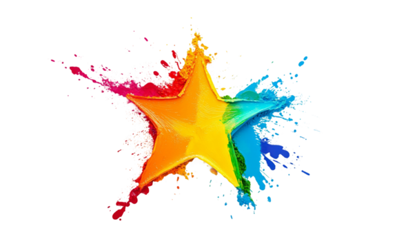 A Multicolored Holi Powder Splash Forming a Star, Symbolizing Celebration Isolated on transparent background.