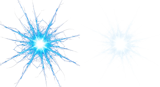 Two sparkling light effects isolated on transparent background with blue and white colors