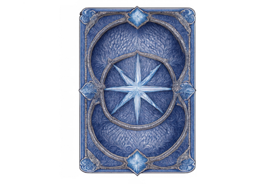 Blue ice magic card design with frosty star emblem, fantasy game element, transparent background for digital art