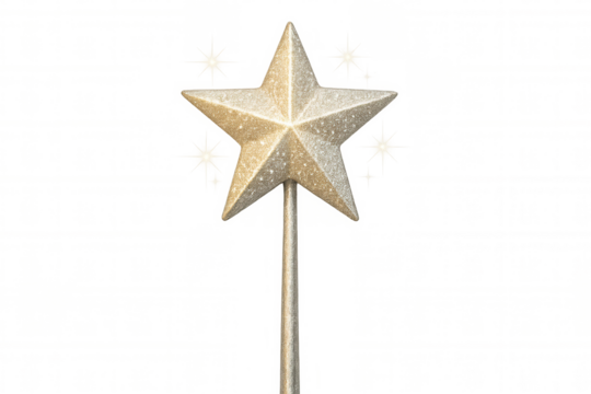 Golden magic wand with star shaped tip sparkling on transparent background, perfect for fantasy and fairytale projects