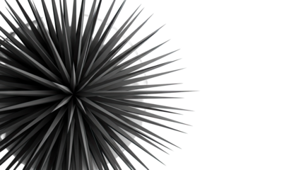 Abstract Black Starburst Plant with Sharp Leaves on White Background