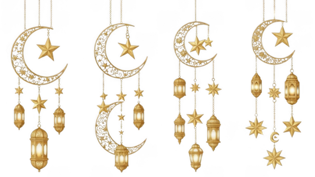 Elegant hanging ornaments with crescent moons and stars