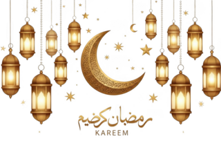 Celebrating kareem with golden lanterns isolated on transparent background