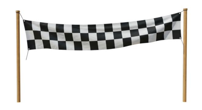 Isolated Checkered Black and White Finish Line Flag on Wooden Poles