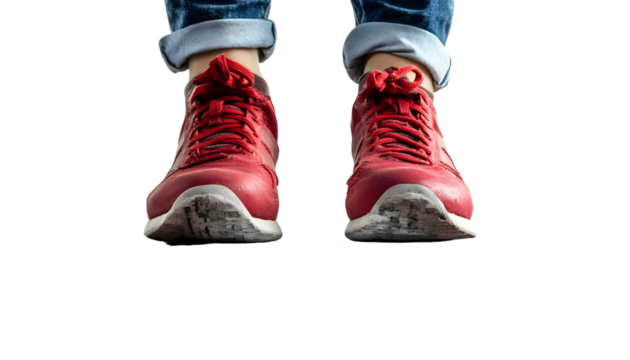 Boxer in red velvet gear practicing protective stance with transparent background