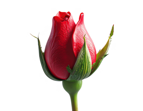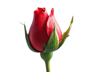 A single red rose bud starting to bloom 3D render,white background