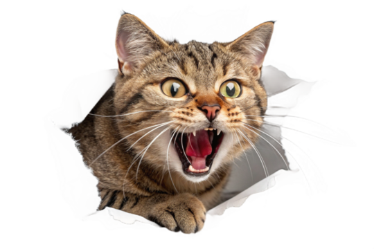 Angry tabby cat background-transparent photo material. Surprise. Shock. Raging fury. Threatening. Alert. Danger.