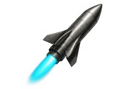 Cartoon rocket space ship take off, isolated on transparent