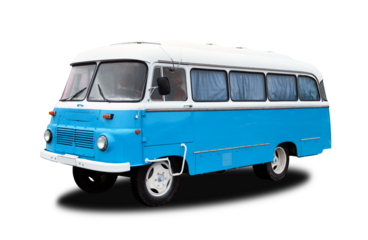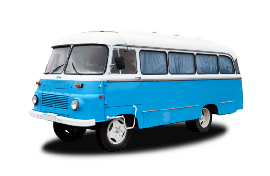 Bright blue retro bus isolated on white background.