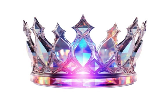 Luxurious gold crown with gems on transparent background