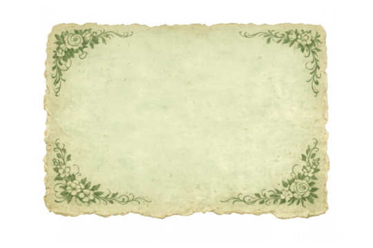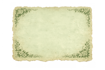 Old textured paper with a decorative green floral border, creating an antique frame on a transparent background