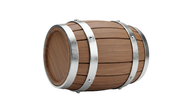 Wood grain barrel structure with distinct staves detailing, photographed on transparent background