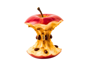Bitten apple core isolated on transparent background