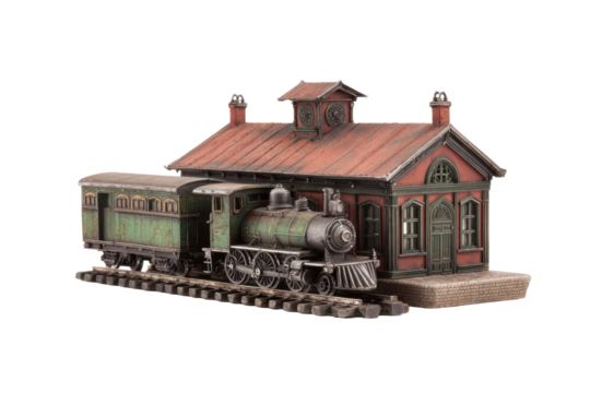 Vintage Toy Steam Train with Miniature Station Model