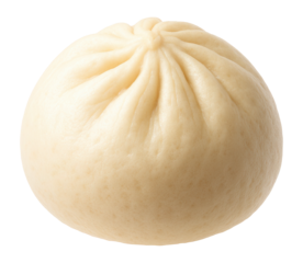 Round steamed bun with a soft, smooth texture and pinched top, commonly used in Asian cuisine for savory or sweet fillings on transparent background.