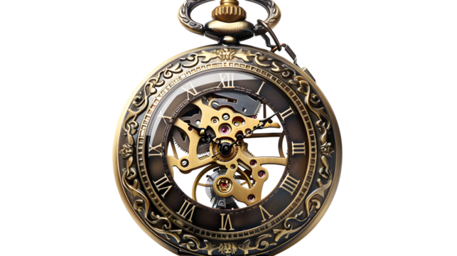 Transparent vintage pocket watch with detailed inner workings