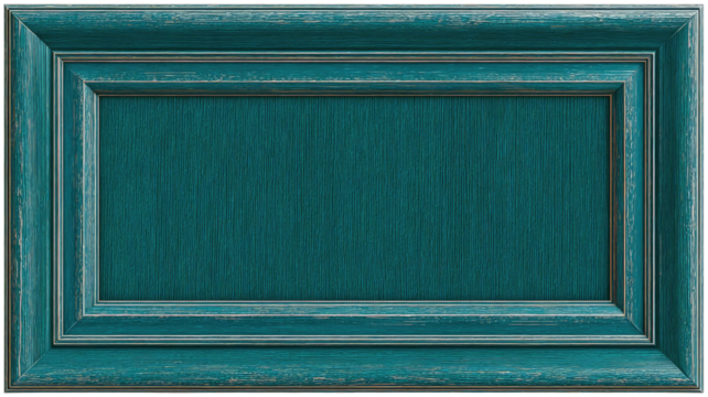 An old wooden frame with a weathered texture is set against a blue industrial steel container wall, featuring a rustic design that serves as a unique exterior entrance to a vintage warehouse