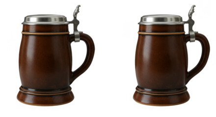 Two Brown Beer Stein Mugs Traditional German Oktoberfest Drink Still