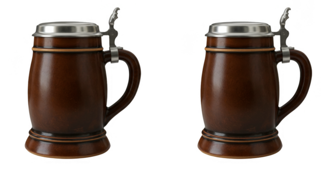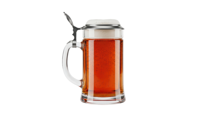 Traditional german beer stein with intricate detailing, a hinged lid, and a classic design isolated on transparent background, perfect for beer enthusiasts