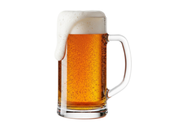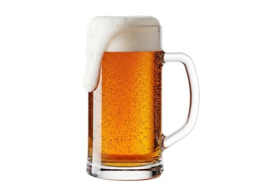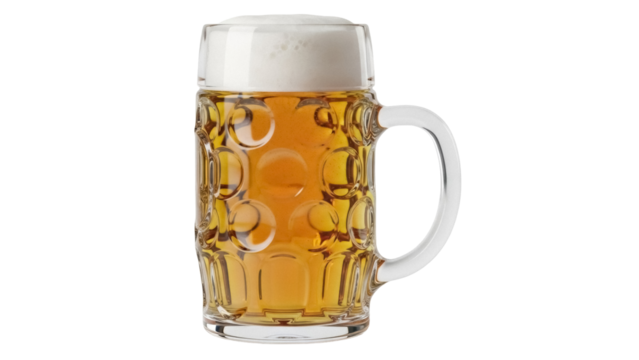 Refreshing lager brew in a dimpled glass stein with frothy head ready to drink and enjoy the taste on transparent background