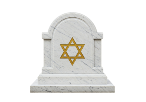 Isolated memorial headstone with a Star of David in marble, remembrance symbol
