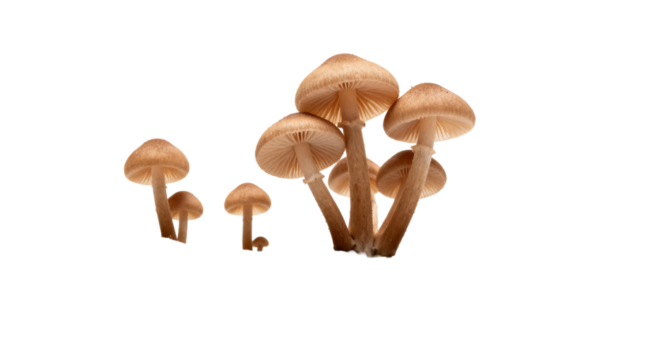 [Transparent Background PNG]Group of brown mushrooms with distinct caps and stems