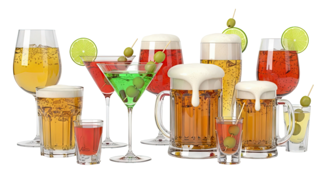 Assortment of alcoholic beverages with garnishes