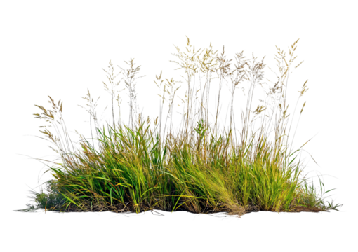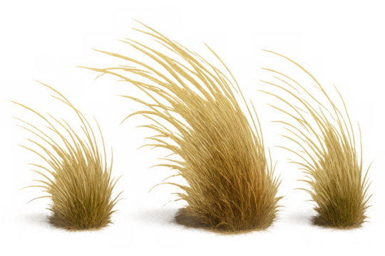 Dry grassland tufts blowing in wind on transparent background, showing natural vegetation elements