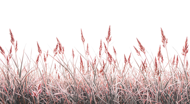 Tall wild grass stalks with feathery seed heads in varying shades of green and tan isolated on a transparent background