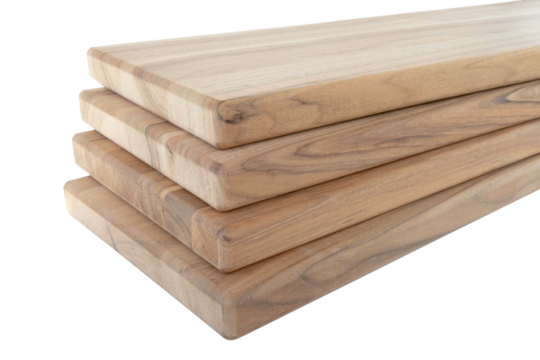 a hand pulls a wooden plank from a stack, steps for a spiral staircase, on an isolated white background