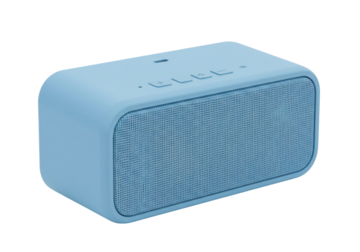 A vibrant green and black portable waterproof bluetooth audio speaker with control buttons and a convenient carrying strap, isolated on transparent background